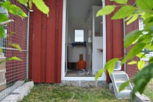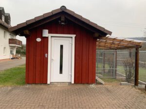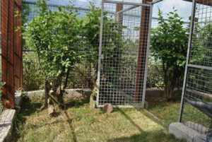 … mit direktem Zugang vom Hof bietet zwei Einzel- bzw. ein Doppelzimmer mit gesichertem Freigehege. Wir  können unseren Stammgästen somit auch eine kontaktlose 24/7-Übergabemöglichkeit zur Verfügung stellen.